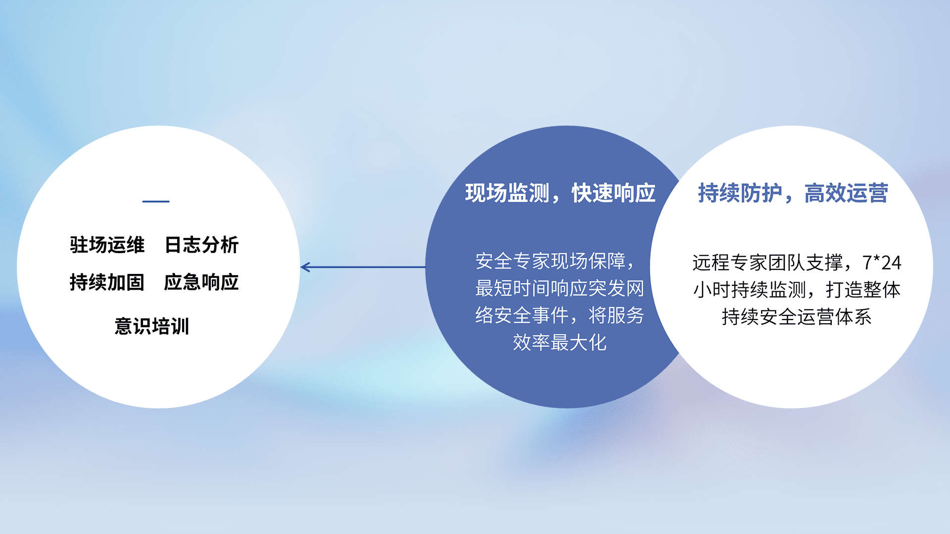 针对客户行业特性,,提供专属的一站式安全管理服务,,,帮助客户全面感知网络空间威胁,,,,通过安全专家的线上、、线下防护支持,,实现风险闭环,,,将安全保障常态化,,,,为客户打造常态化安全运维运营服务。。